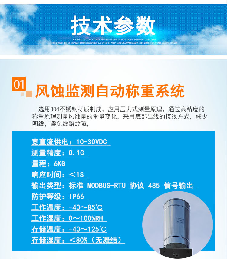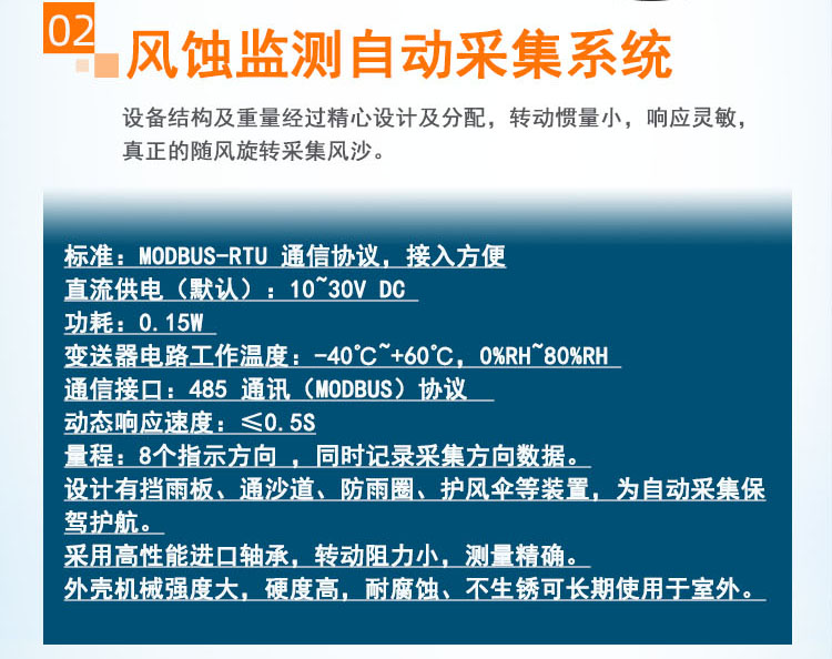 QN -QXZ 全自动风蚀监测仪是由立柱、太阳能供电系统、风蚀监测主机、风蚀监测自动采集系统、风蚀监测自动称重系统、风速传感器、风蚀监测系统云平台等等组成。