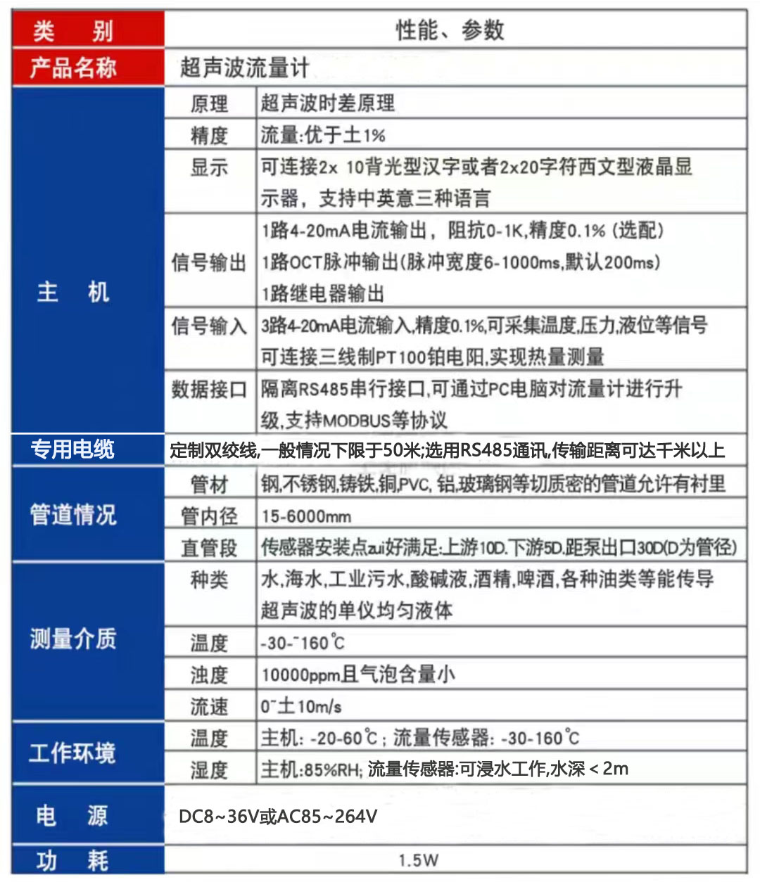 3、测量范围大,可实现口径DN15-DN6000管道测量。