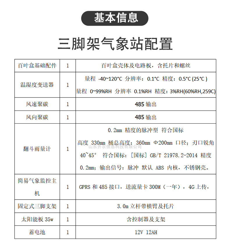 配置三脚架支撑,可抵抗12级以上大风。包含风速、风向、空气温湿度、雨量。可增加定制其他要素。监测数据上传云平台,可查看下载数据。